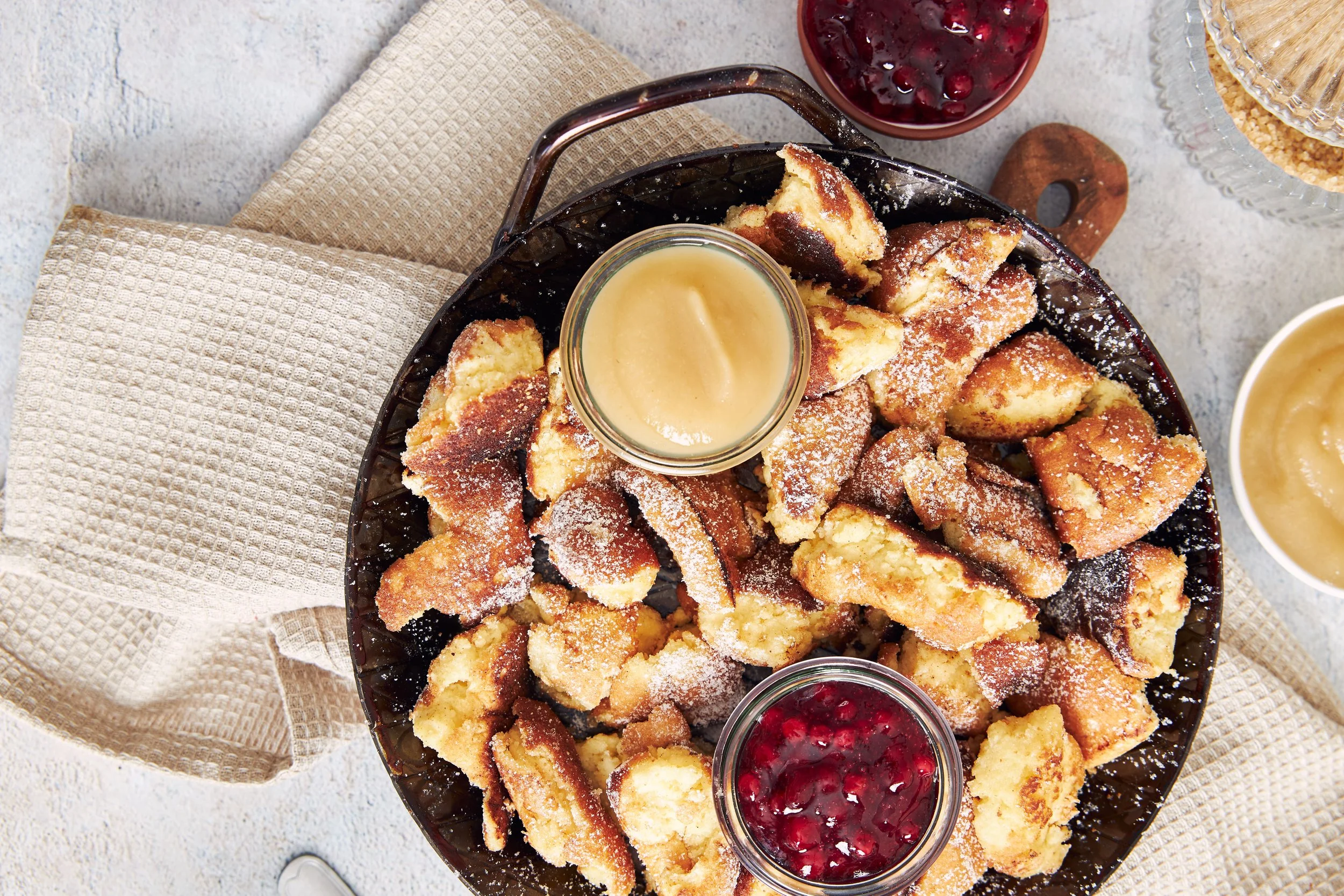Generously sprinkle with sugar and cinnamon or serve with applesauce.