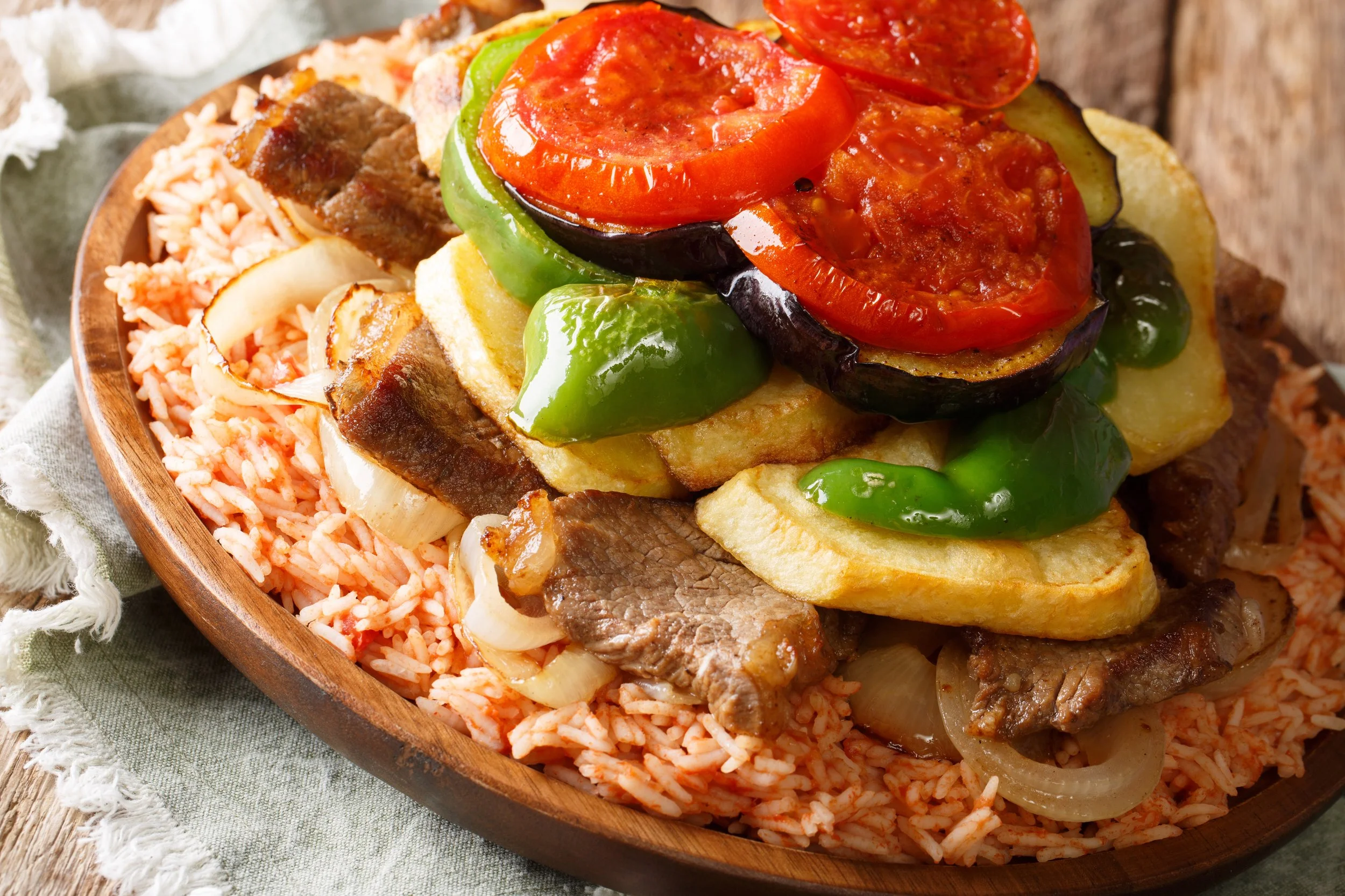 Makloubeh, meaning “upside down,” is a popular Palestinian dish which is flipped upside down right before serving to make for a dramatic entrée. Makloubeh is often made for guests and, as Aya observes, “Guests love it. They might be thinking to themselves before a gathering, “maybe they’re going to make Makloubeh!”
